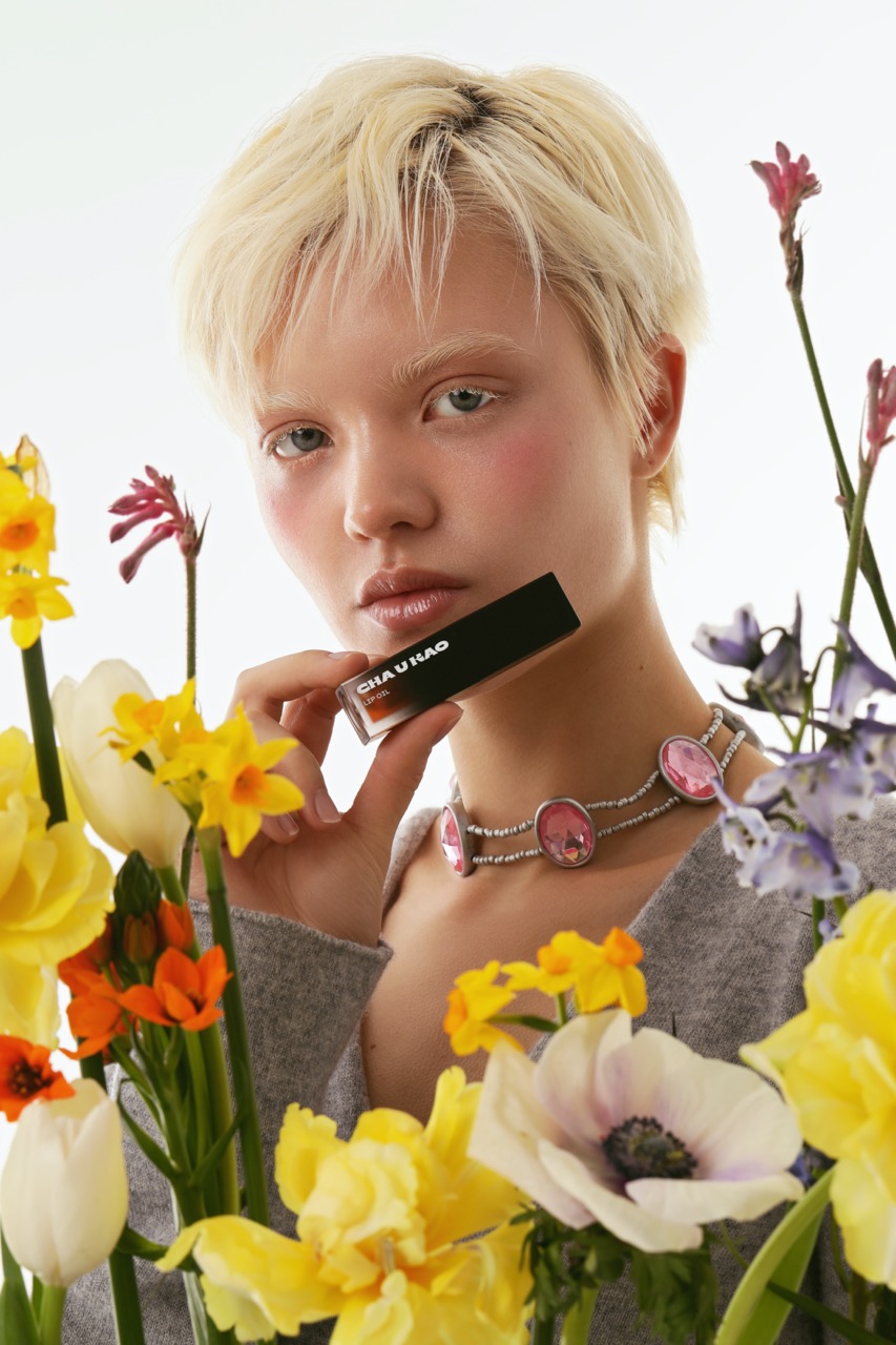 Весенняя съемка для бренда косметики Cha U Kao. В задачах была работа с цветочными композициями и создание декораций из бумаги